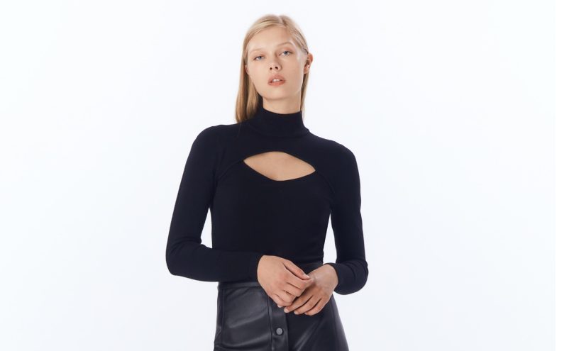 Vamos con otro jersey cut out o con apertura, en este caso no en los hombros sino un único en el pecho, de lo más moderno y original. Es tendencia este tipo de prendas, lógicamente, y viendo el modelo anterior. Es de cuello perkins y manga larga con detalle cut out en la parte delantera. Su precio es de 21,99 euros y lo tienes en tallas S, M y L.