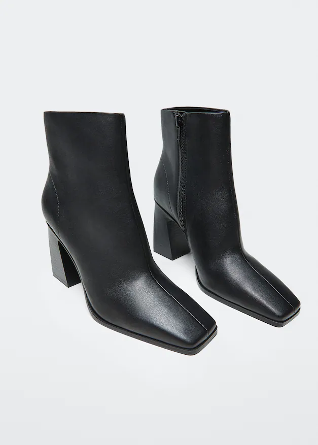 Si lo que estás buscando es un calzado diferente y que aporte un toque más arreglado a tus looks, estos botines de efecto piel de Mango, con punta cuadrada, caña baja y tacón bloque de 8 centímetros, con cierre lateral de cremallera para facilitar el calce y forro interior para un mayor confort, son perfectos para ti. Lo mejor de todo es su precio. Puedes conseguirlos por tan solo 29,99 euros, lo que los convierte en la opción más barata de la lista, aunque por su diseño nadie se va a creer su bajo precio. Están disponibles en negro y en marrón.