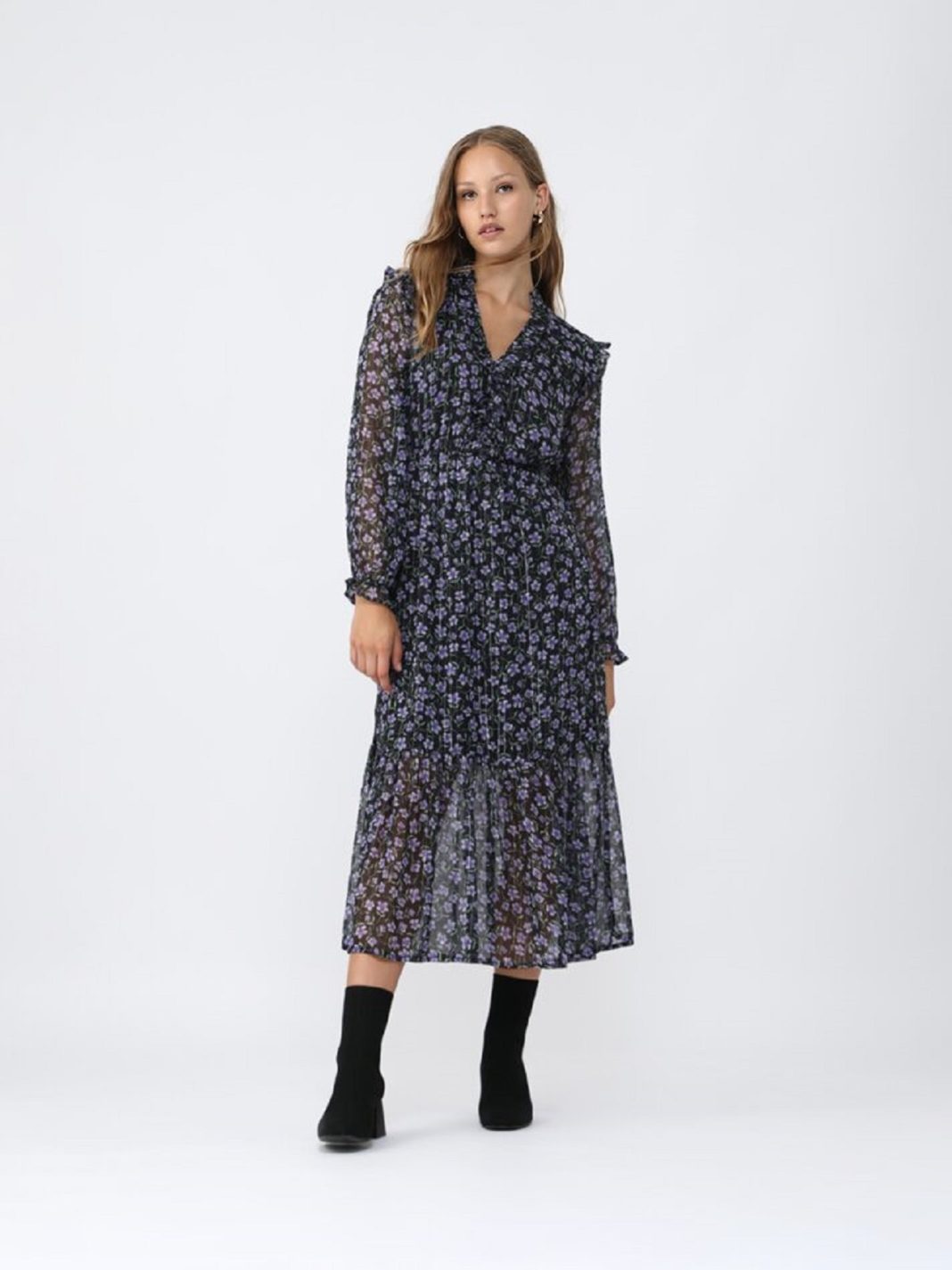 Con unas botas negras, este vestido midi de cuello pico y manga larga no puede quedar mejor. Es estupendo para temporadas de entretiempo y con chaquetas que llegan a la cintura queda de lujo. Tiene unos detalles de tejido fruncido en cuello, pecho y mangas. Presenta un tejido fluido y vaporoso con detalles de hilo metalizado y volante con vuelo que da mucho juego a la prenda. Para las que ya están cansadas de los diseños sosos y aburridos, la tienda de moda trae una pieza distinta con la que siempre quedarás bien. Tiene estampados en negro y burdeos por 22,99 euros. ¡Esto mejora por momentos!