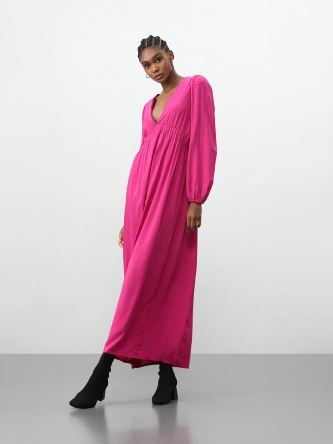 Para las amantes de la moda ‘oversize’, Lefties tiene este diseño que viene dispuesto a enloquecernos. Un vestido midi con escote de pico y manga larga ligeramente abullonada. Además, tiene una cinta a tono en la espalda para ajustar mejor las medidas y un tejido comodísimo hecho 100% de viscosa. 17,99 euros es un precio de risa para semejante pieza. Para mejorar todavía más el asunto, la tienes en varios colores: rosa, kaki y negro y blanco.