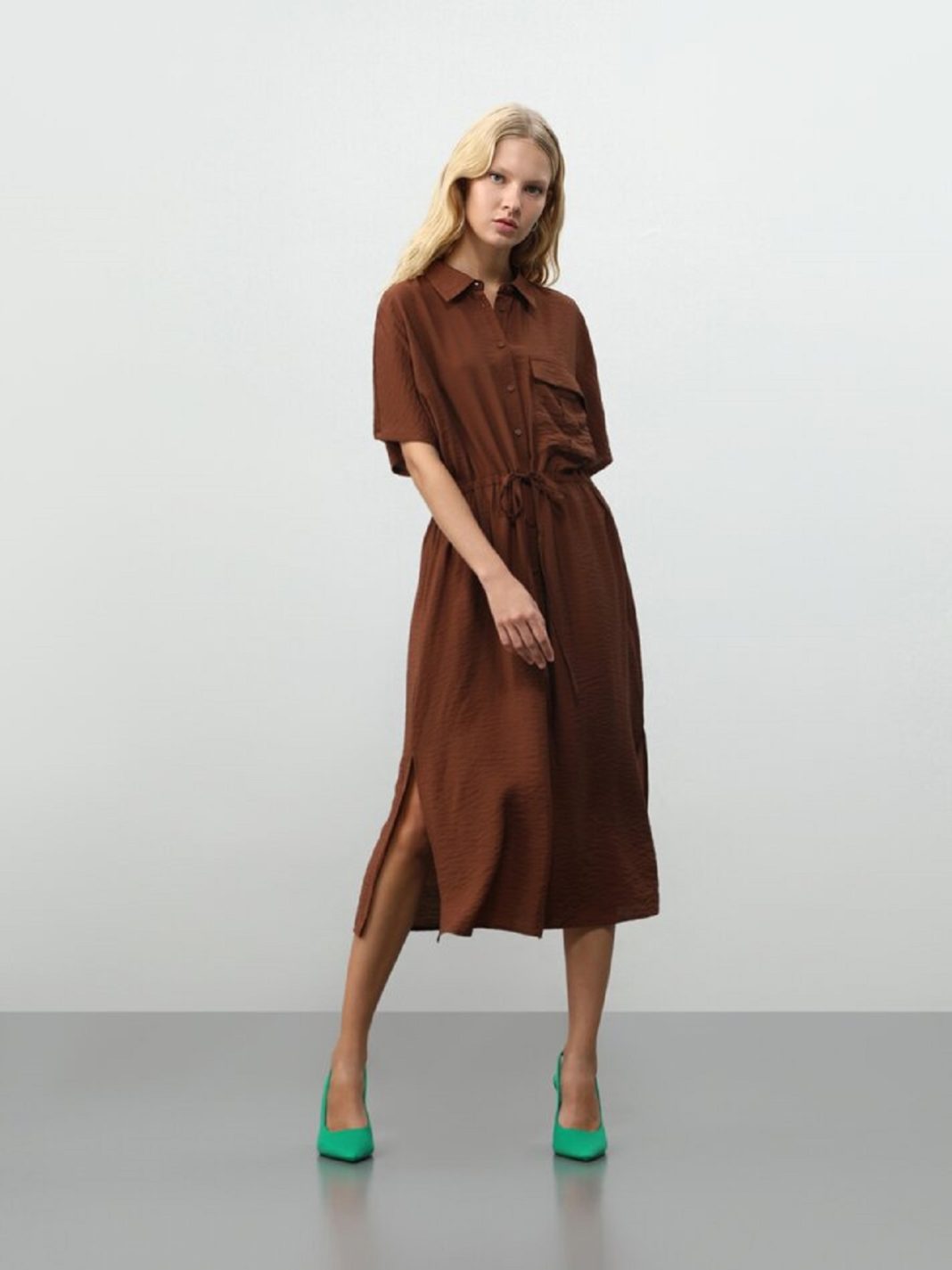 Este vestido midi con cuello camisero y manga corta queda bien en cualquier época del año. Viste muchísimo con unos buenos tacones y deja sin aire con unas zapatillas. Básicamente, este diseño con un bolsillo grande en el pecho y una cinta de ajuste a tono puede convertirse en lo que tú quieras. Fue confeccionado con cómodo tejido con textura para que pudieras tener libertad de movimiento. Es una oda a la tranquilidad y lleva el ‘confort’ como su sello identificativo. Hay ‘stock’ en marrón y rosa ‘nude’. ¿Su precio? 19, 99 euros. ¡Vamos corriendo para no quedarnos sin el nuestro!