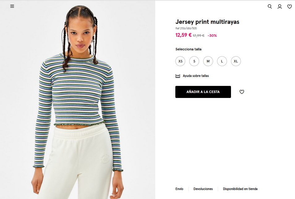 Es un jersey que cuenta con un estilo print multirayas perfecto para usar en cualquier temporada del año. Dado que, está elaborado con ese estilo perfecto para esas mujeres que aman estar a la vanguardia. Además, se puede combinar con otra de las prendas de la misma tienda para un mejor estilo. Para que lo puedan comprar solo tienen que entrar a Bershka por 12,59 €.