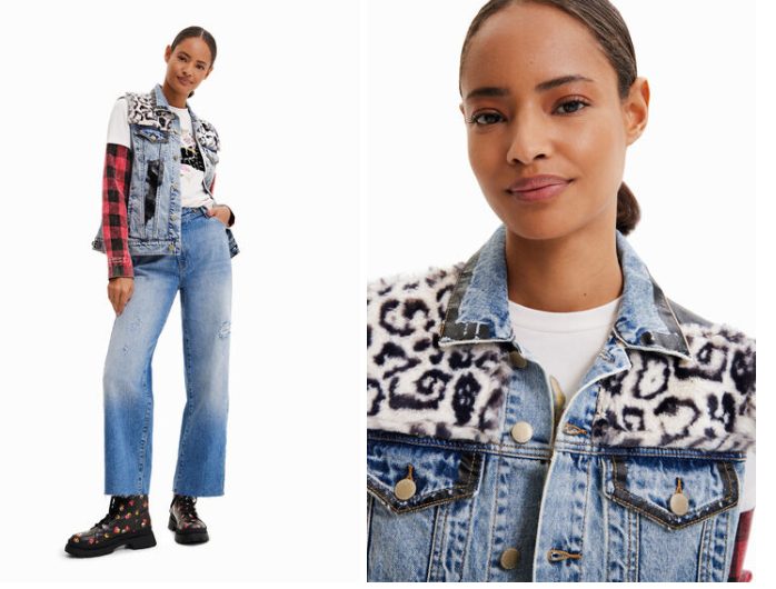 Si hay una prenda ideal para el entretiempo, para esos días que aún abundan en los que no hace ni frío ni calor, es el chaleco. Desigual también tiene modelos preciosos, como este vaquero animal print en la parte superior y pinceladas negras efecto pintado a mano. Con texto del «Manifesto» en la parte trasera y confeccionado con algodón. No se puede pedir más por menos, puesto que con el 30% de rebaja se queda ahora en 83,30 euros.
