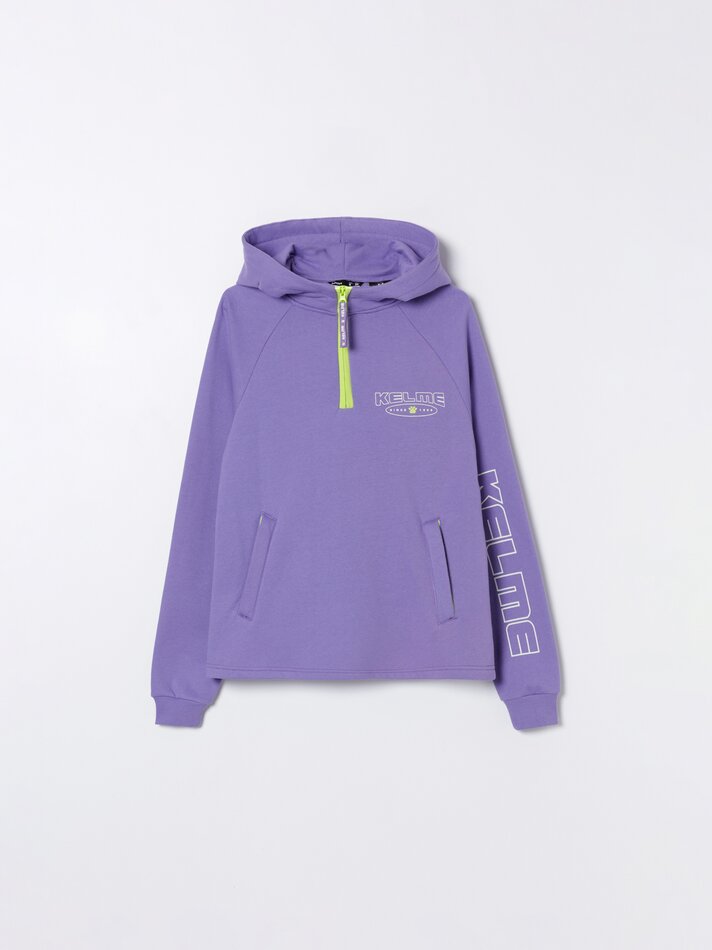 Por el mismo desembolso que el artículo anterior, 15,99 euros, se puede encontrar en Lefties también esta otra sudadera de la conocida marca Kelme. Otro ejemplo de la variedad que existe en la cadena a la hora de ofrecer este tipo de prendas entre sus clientas habituales. En este caso concreto es de un llamativo color lila, y tiene tanto capucha como dos bolsillos.