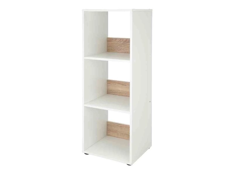 Esta estantería es una muy buena opción para tu hogar, un modelo de diseño moderno con cuerpo blanco mate y un diseño personalizado gracias a los tres compartimentos con pantallas invertibles en color blanco e imitación de roble.
