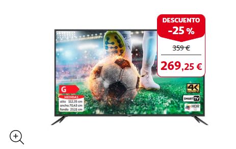 De la cocina pasamos al salón, con un aparato tecnológico que solemos renovar tras el verano, para disfrutar de lo mejor en streaming o del deporte. Si necesitas renovar tu televisor pero no gastar mucho, Alcampo te lo pone fácil con esta maravilla Smart TV con WiFi, TDT T2, USB y 3HDMI. Ahora con el 25% de descuento se queda en 269,25 euros, un chollo para la calidad de TV que tenemos delante. Aprovecha la ocasión.