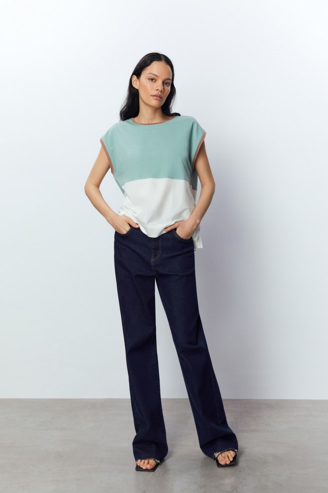 2Camiseta en bloque de color verde menta, perfecta para primavera