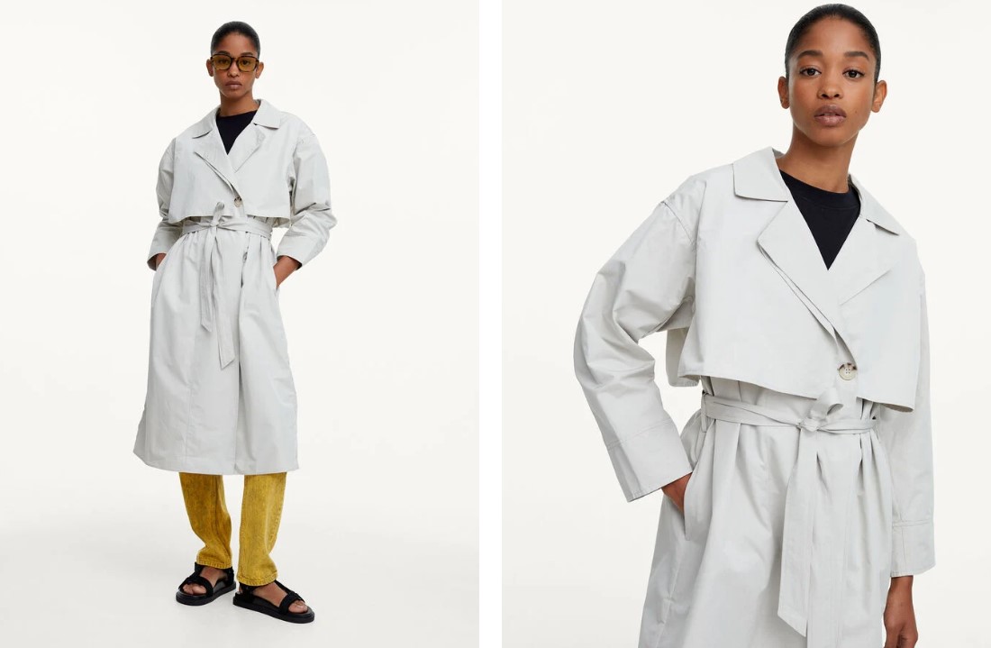 La gabardina es la favorita del otoño para completar nuestros looks de entretiempo gracias a su diseño tan atemporal como estiloso. Su elegancia ha hecho que sea un imprescindible en cualquier vestidor que se precie, consiguiendo que jamás se pase de moda. Parfois tiene una de cuello solapa con botones y manga larga. El cinturón es del mismo tejido. Este producto está disponible en la tienda solo en color crudo y en talla única. La consigues por solo 49,99 euros.