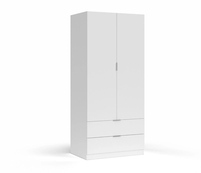 Leroy Merlin tiene los mejores armarios roperos baratos para habitaciones juveniles, segundas viviendas o como armario complementario para organizar la ropa de otras temporadas. Este diseño en blanco es versátil y elegante, perfecto para cualquier ambiente decorativo. Cuenta con dos puertas abatibles y dos amplios cajones. Cuenta con una barra de armario y un gran espacio para perchas. Se trata de un mueble de diseño sobrio, sencillo y elegante, que cuenta con el sello PEFC que garantiza que la madera proviene de bosques gestionados de forma sostenible. Las medidas son de 81 x 180 x 52 cm (ancho x alto x fondo) y el precio es de 114€.