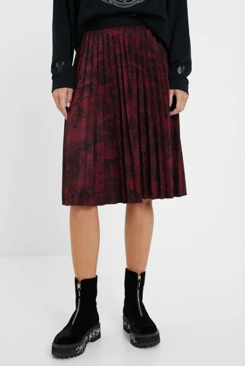 Las faldas de corte midi siempre son una buena idea. Además, a eso hay que sumarle que esta de Desigual es una de las más originales con las que te vas a encontrar. Gracias a sus tonos burdeos y su estampado en negro, cuenta a su vez con la virtud de poder combinar con todo. En cuanto a su precio, ahora la tienes disponible por tan solo 44,97 euros en lugar de 89,95.