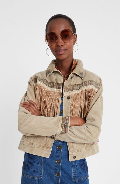 Este otoño te llamarán la atención las prendas de pana debido a lo bien que se adaptan a la temporada. En este caso, una de las que no te querrás quitar es esta chaqueta con flecos y bordados que destaca gracias a su suave tono beige, que combina con todo. En cuanto a su precio, ahora la podrás conseguir por tan solo 64,97 euros en lugar de 129,95. Una buena oportunidad.