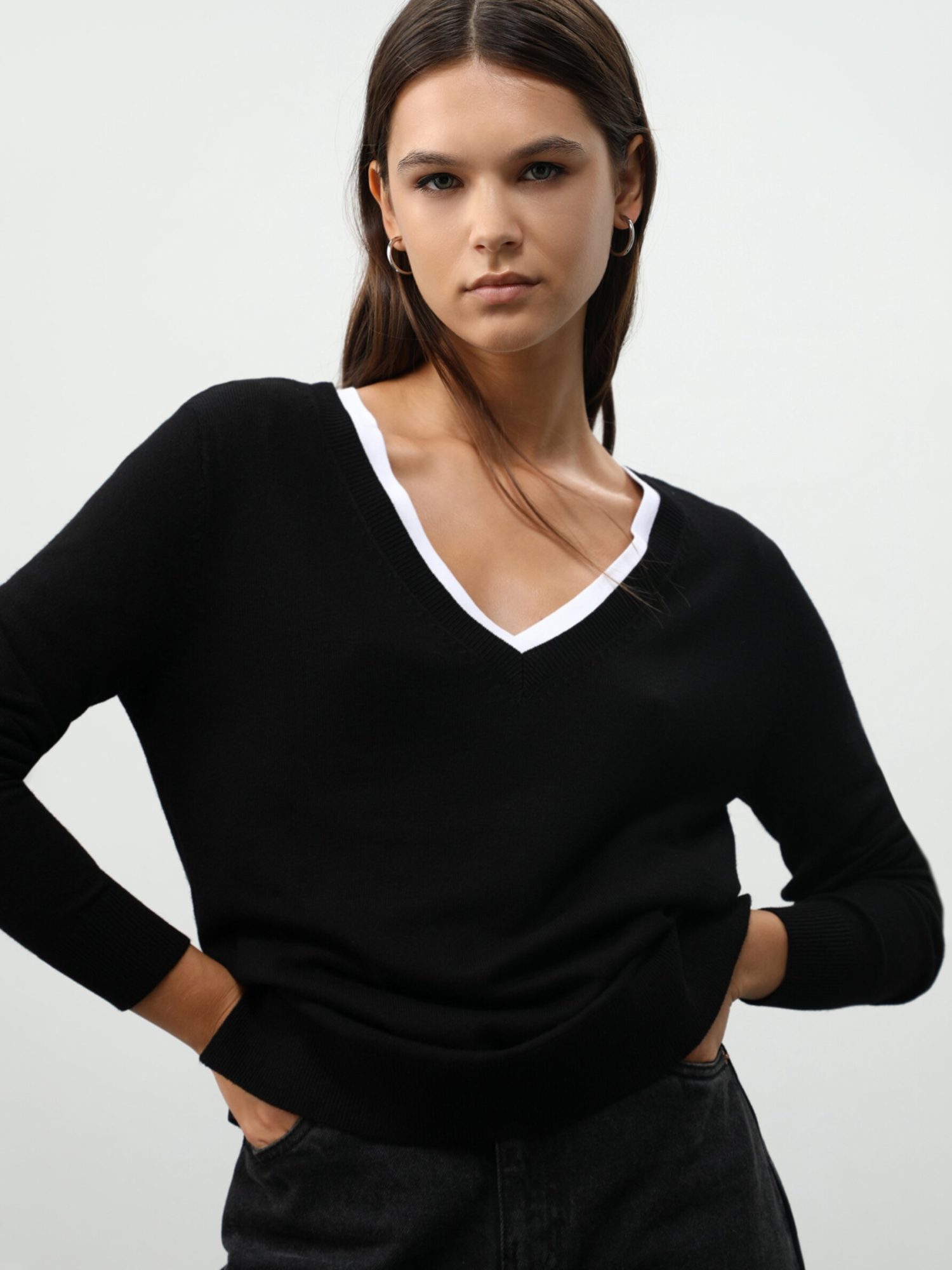 Cuando hablamos de las mejores propuestas de Lefties no podemos dejar de mencionar el jersey de cuello pico. Solo cuesta 7,99 euros y se encuentra disponible en todas las tiendas de la firma. Es un jersey básico de cuello pico y manga larga. Cuenta con dos aberturas en el bajo de la tienda y está confeccionado en un cómodo tejido de punto.