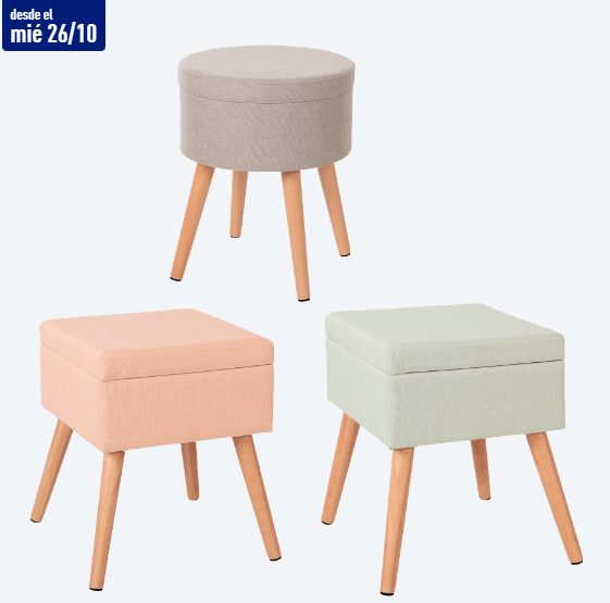 Decimos práctico porque no solo sirve para sentarse sino también para decorar. Y es que nórdico es sinónimo de diseño, de elegancia minimalista pero también de practicidad y versatilidad. Es una compra de ’10’ por ello. Como ves tienes tres dos modelos a elegir y tres colores. Todos son con patas de madera maciza de haya, carga máxima de 100 kg y asiento acolchado. Es de montaje sencillo y sin herramientas. El precio se queda en 25,99 euros.