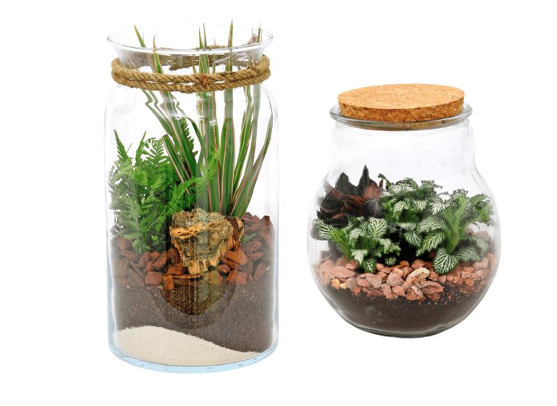 Está disponible en diferentes variedades, contando con un diámetro de 16 cm y una altura de 19-27 cm, necesitando de un riesgo moderado, semisombra, siendo terrarios de interior que incluyen jarro de cristal. Su precio de venta es de 12,99 euros.