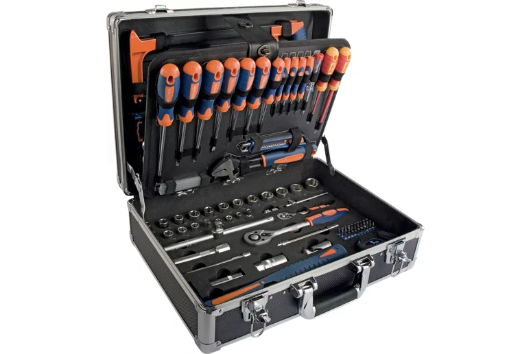 Es un modelo Dexter fabricado en aluminio resistente con capacidad para introducir hasta 130 piezas. Incluye todas las herramientas necesarias en el trabajo frecuente de bricolaje como destornilladores, vasos, martillo, sierra, puntas, flexómetro, etc. Lo tienes por 129 euros.