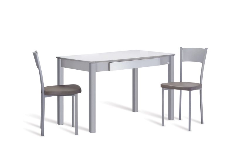 No puede faltar un elemento de cocina y uno de los que más se renuevan son las mesas, siempre imprescindibles sobre todo para desayunar o aquellas familias que comen allí en vez de en el comedor. Y para ahorrar espacio nada mejor que esta, en cristal blanco óptico, tablero elevable, estructura melamina gris, patas metal color gris. Cuenta con un cajón doble para más almacenamiento. Está en Leroy Merlin por 349 euros.