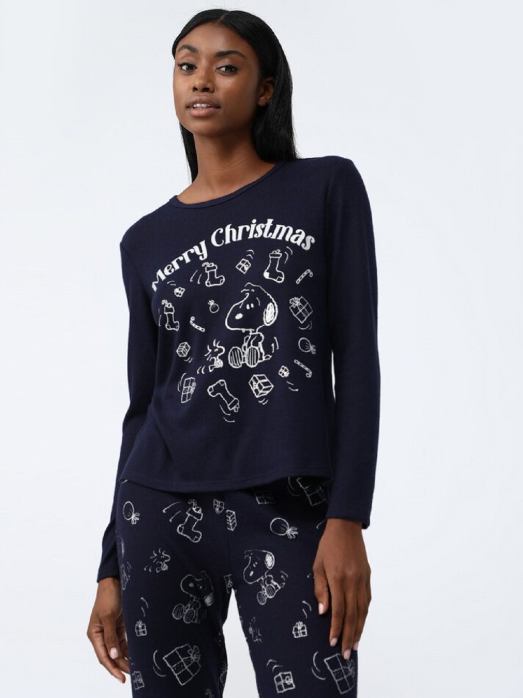 Un pijama súper navideño pero que es perfecto para el resto del invierno, aunque no descartes hacerte las típicas fotos navideñas con él puesto, porque para resaltar en las fiestas más importantes del año no es necesario llevar vestidos de lentejuelas, basta con un poco de gracia y prendas originales como esta. La cintura del pantalón es elástica y la camiseta es cuello redondo y manga larga. Se vende el juego completo por 17,99 euros. Su tejido es súper agradable al tacto. No querrás quitártelo y desearás quedarte todo el día en casa.