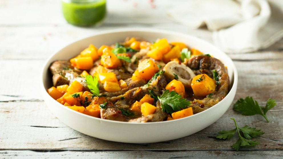 En cuanto al caldo, lo incorporamos y cocinamos estofando la carne con las verduras entre 35 y 45 minutos, probando hasta que esté en su punto.