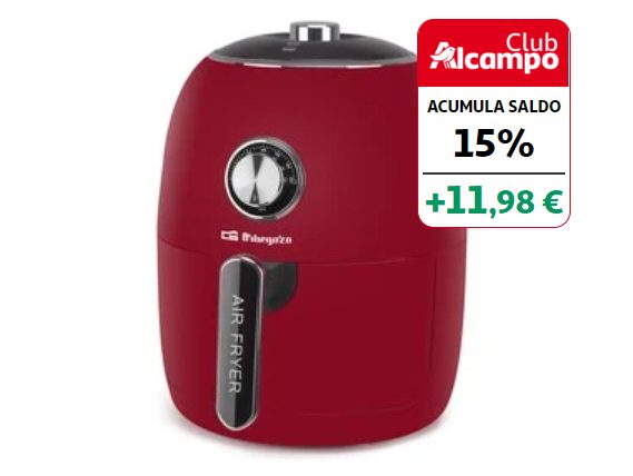 Si hay un elemento que se ha convertido en imprescindible en toda cocina que presuma de ser como la de un profesional, es la freidora sin aceite. Una de las que más llaman la atención de Alcampo es esta, gracias a su bonito e intenso color rojo. Además, aunque cuesta 79,90 euros, podrás acumular un 15% de su precio en tu tarjeta Club. Es decir, te ahorrarás 11,98 euros.