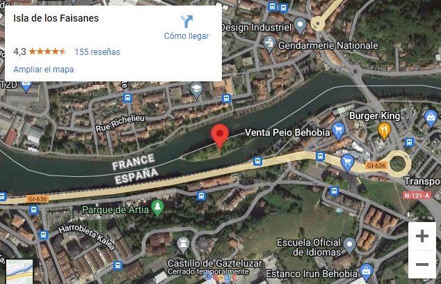 Esta «medio» posesión española está situada entre Irún y Hendaya, sobre el río Bidasoa y que separa a estas dos poblaciones fronterizas entre España y Francia. Curioso, ¿verdad?