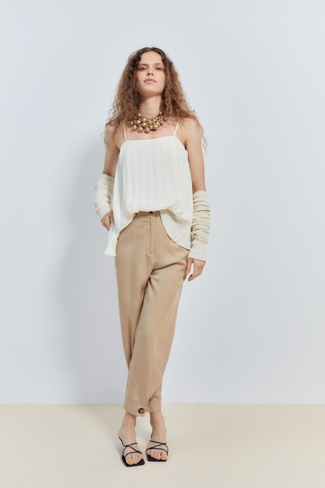 Los pantalones de estilo fluido también serán unos de los que más veamos los próximos meses. En Sfera destacan, sobre todo estos, gracias a su neutro color beige, que llaman la atención también por ese detalle de puño en la parte de abajo que ayuda a marcar la figura. Con un precio de tan solo 35,99 euros, combinarán con todo.