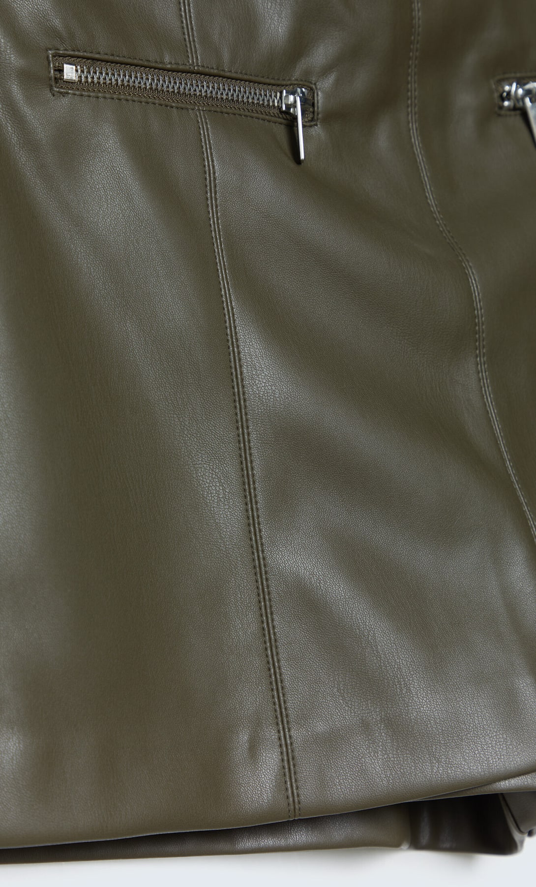 Otra de las prendas que son tendencia esta temporada de otoño e invierno es la skort. También heredada de los 90, lo cierto es que es una de las piezas más cómodas que te querrás probar. Esta, en concreto, está terminada en efecto piel y cuenta con el tono caqui que nunca falla. Disponible en Stradivarius por solo 22,99 euros, no la querrás dejar pasar.