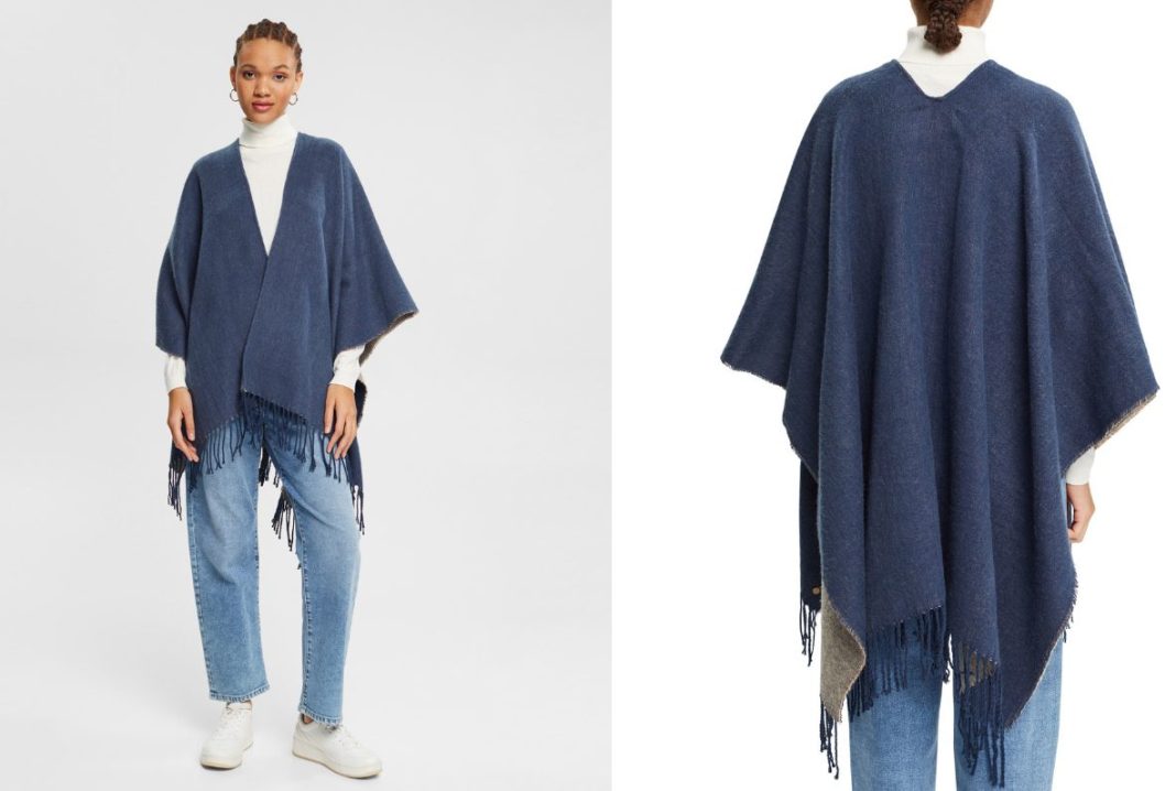 Dentro de los complementos de otoño, también han vuelto a ponerse de moda elementos que no se pueden considerar prendas, aunque al final vistan y lo parezcan. Es el caso de la capa, ideal para esos días de entretiempo que combina buen tiempo y parte fría a última hora, por ejemplo. Tienes esta capa de punto en azul con flecos que es perfecta para vestir en cualquier ocasión, sencilla y que tienes ahora por 34,95 euros. En este enlace la puedes adquirir.