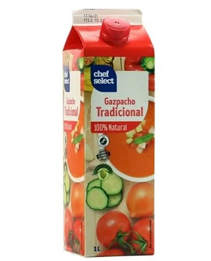 El gazpacho Chef Select de Lidl también tiene una excelente valoración y podría decirse que es uno de los mejores, incluso por delante de otras marcas que cuestan el doble. El único problema que plantea la Organización con este producto es que no viene especificado el porcentaje de hortalizas utilizado en la receta. Aun así, tiene puesto reconocido por su sabor y su bajo contenido calórico. Se vende en tetrabricks de 1 litro por 1,19€.