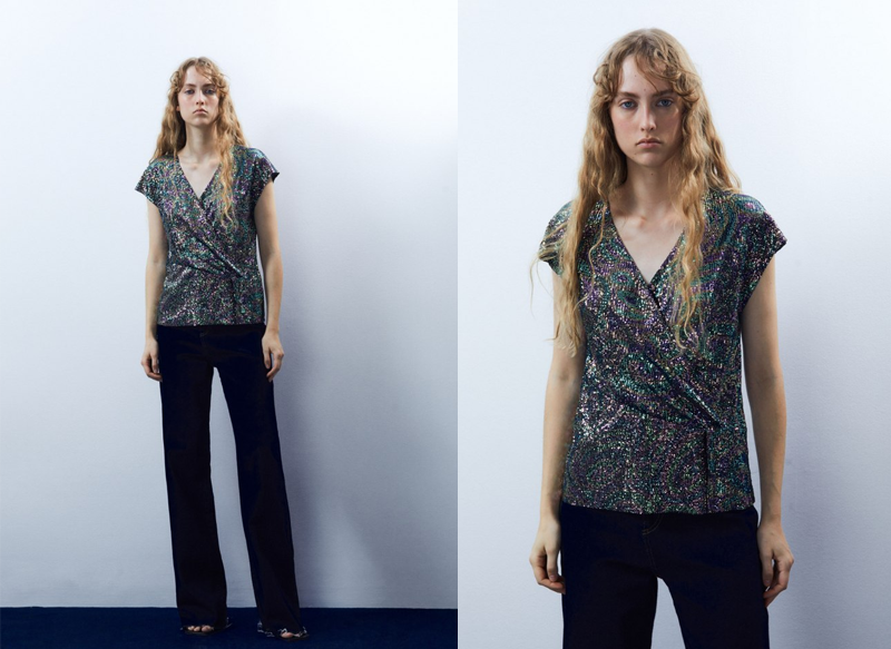 A la venta por 17,99 euros, es un cuerpo brillos con cuello cruzado y manga corta. Es una camiseta de manga corta, con cuello de pico y diseño cruzado en delantero. Es una prenda ideal para lucir con diferentes prendas de ropa inferiores.