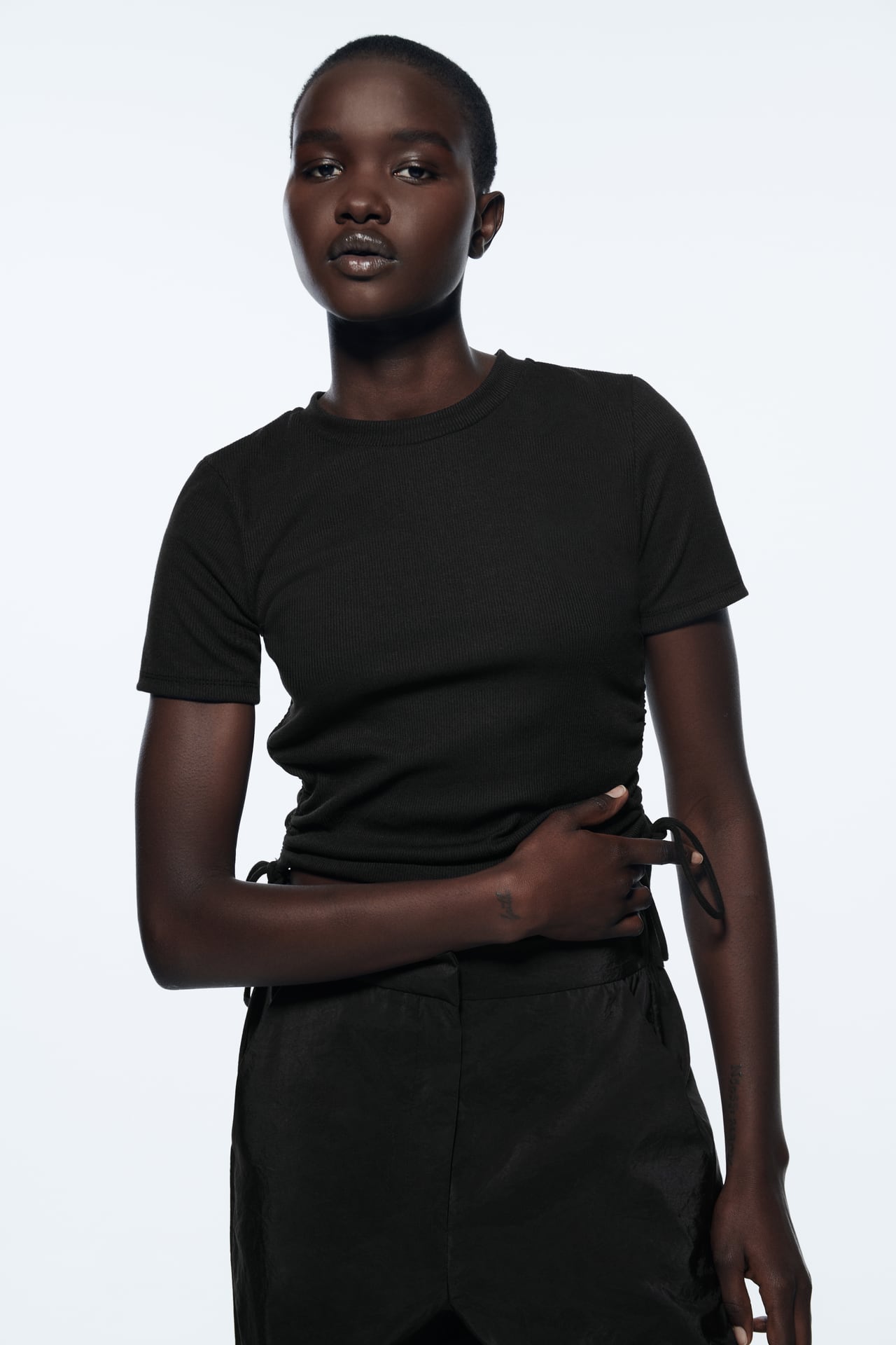 Toda camiseta tiene que ser cómoda, muy fácil de combinar, que permita llevarla puesta a muchas de las actividades que diariamente cumple la dama de hoy. Zara tiene en sus tiendas, la Camiseta rib frunces, una prenda de vestir que cumple con todo lo requerido.