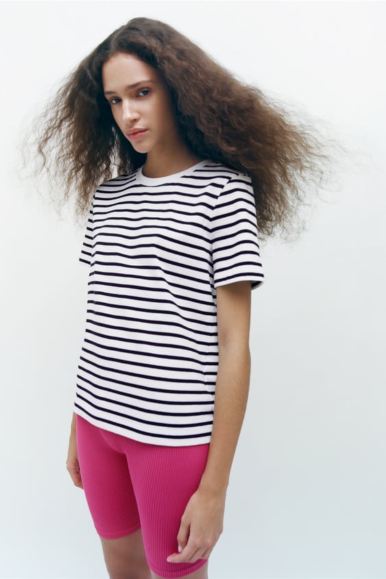 La camiseta algodón rayas que tienen las tiendas Zara para ti, son una delicada prenda de vestir, súper cómoda, moderna y algo casual. Su estilo a rayas siempre inspira elegancia y glamur.