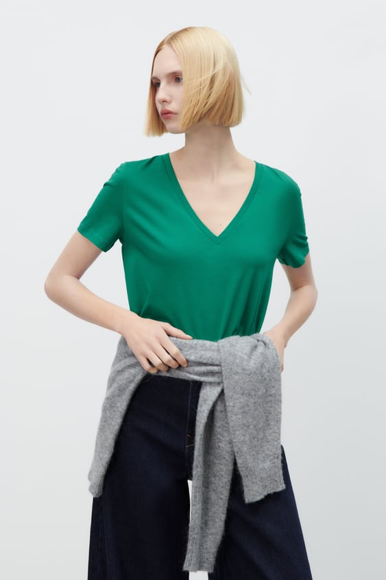 4Camiseta básica escote pico Zara