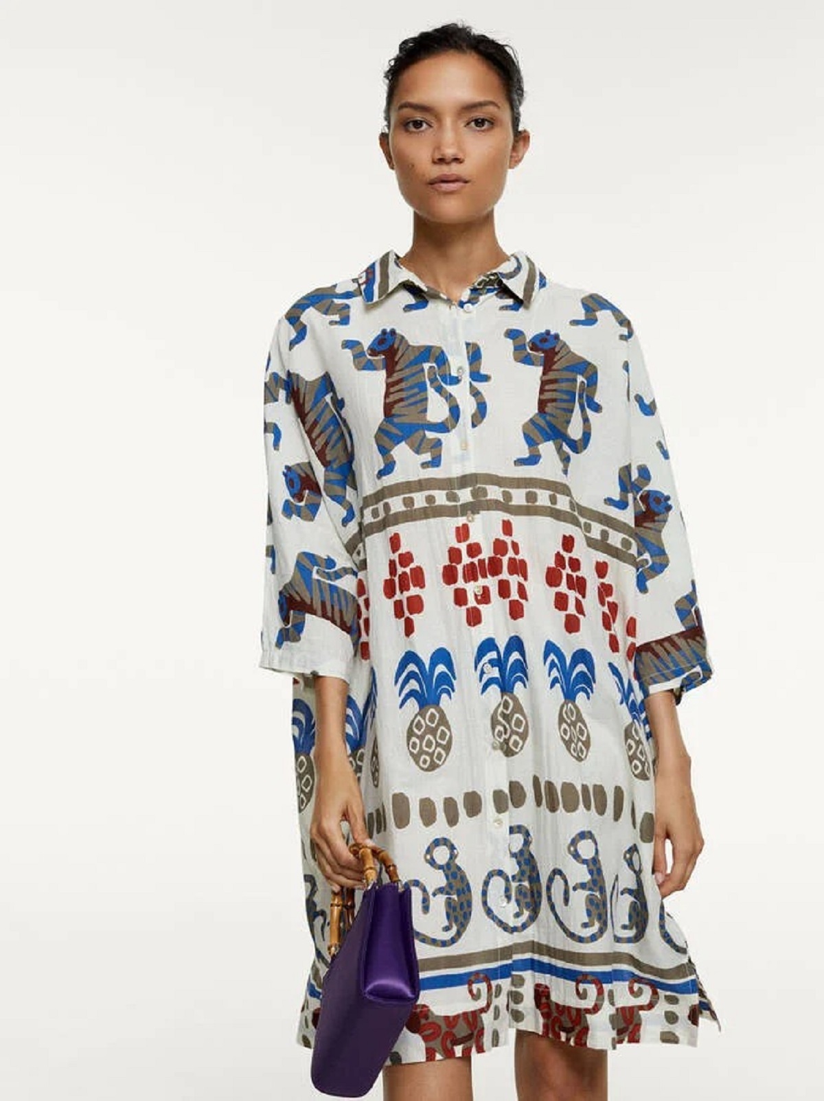El vestido anterior no es el único que está causando furor esta temporada. En épocas como esta, en las que no tenemos claro si hará frío o calor cuando salgamos de casa, es común llevar prendas así en el bolso, estilo kimono o chaquetita. Por otro lado, tampoco viene mal ponérselas en interiores, donde todavía podemos lucir algo más frescas, dado que las calefacciones suelen hacernos olvidar el frío que se cuece fuera. Si eres del club de las amantes del estampado y te gusta resaltar, este vestido tiene que ser tuyo. Algo que resulta todavía más fácil si reparamos en su precio: 12,99 euros.