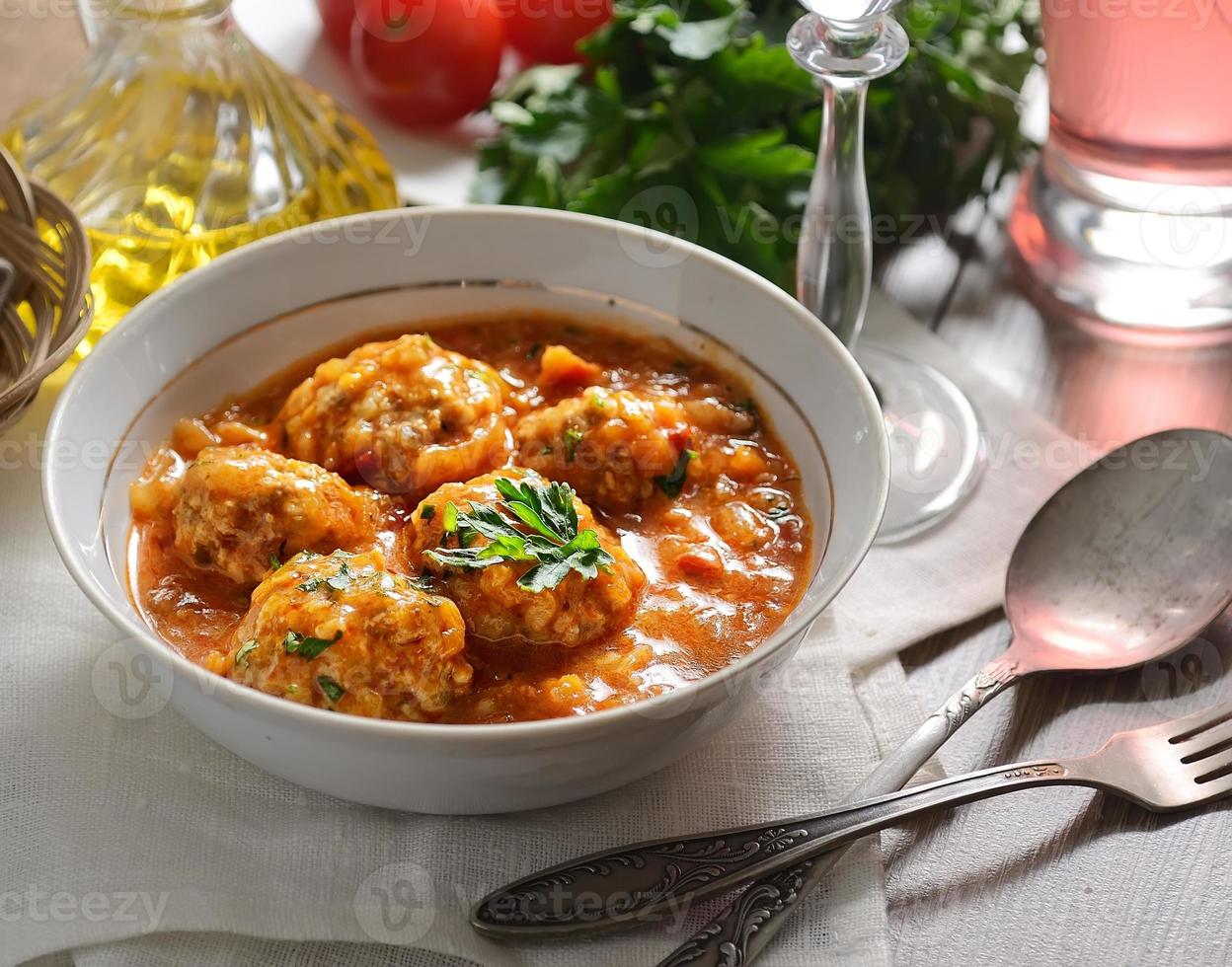 Cuando hayan pasado esos 10 minutos, agrega el vino y deja que evapore el alcohol otros dos minutos. Después, agrega el agua, corrige de sal y deja que se cueza a fuego medio otros 20 minutos. Una vez que esté todo listo, lo único que debes hacer es pasar todas las verduras por la batidora y reservar. Mientras se está cocinando la salsa, puedes preparar las albóndigas. Para ello, caliente en una sartén abundante aceite.