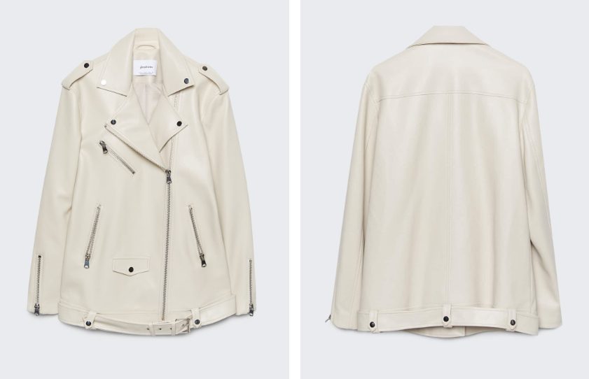 Comenzamos con una cazadora ideal para el entretiempo, ya que aún habrá varias semanas donde no llegará el frío intenso. Los modelos oversize están de moda, así qué mejor que esta novedad tan bonita, elegante y a la vez rompedora. Es una cazadora bilker de cuello y solapa con manga larga, con bolsillos delanteros con cremallera metálica, detalle de trabillas en hombros, cinturón con hebilla y cierre frontal con cremallera metálica. Su precio es de 39,99 euros.