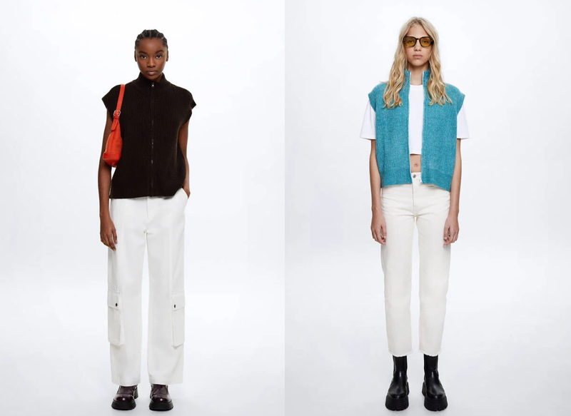 Es un chaleco de cuello alto confeccionado en tejido de punto, sin mangas, contando con un cierre delantero con cremallera. Se trata de un producto que se encuentra disponible en talla única, estando especialmente diseñado para adaptarse a las siluetas más variadas y adaptarse a distintos tipos de cuerpo.