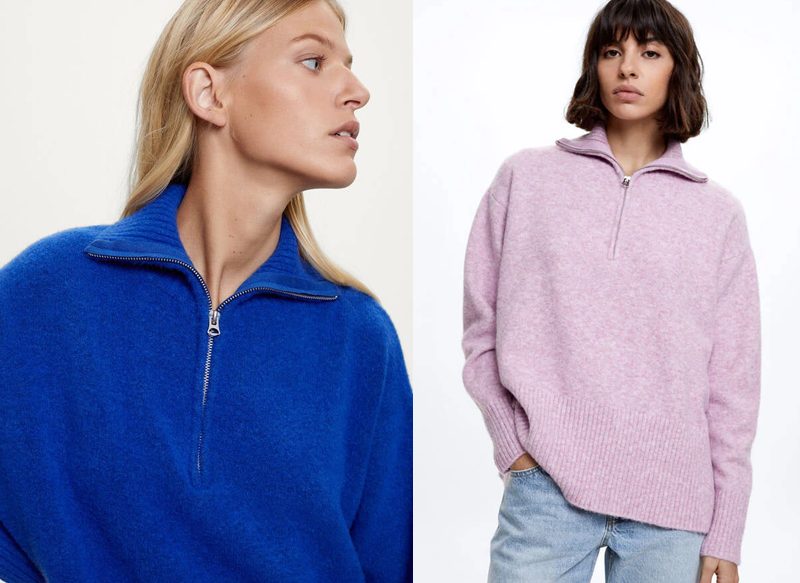 Este jersey de punto con cuello alto es una interesante opción para vestir durante este otoño, una prenda disponible en rosa y en azul que sirve para poder combatir las bajas temperaturas al mismo tiempo que se luce estilo.