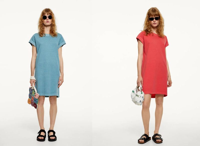 Este vestido corto con cuello redondo de Parfois es un modelo que no encontrarás en otras firmas, un interesante modelo casual para tus looks que se vende en color azul claro y en rojo por un precio de 22,99 euros.