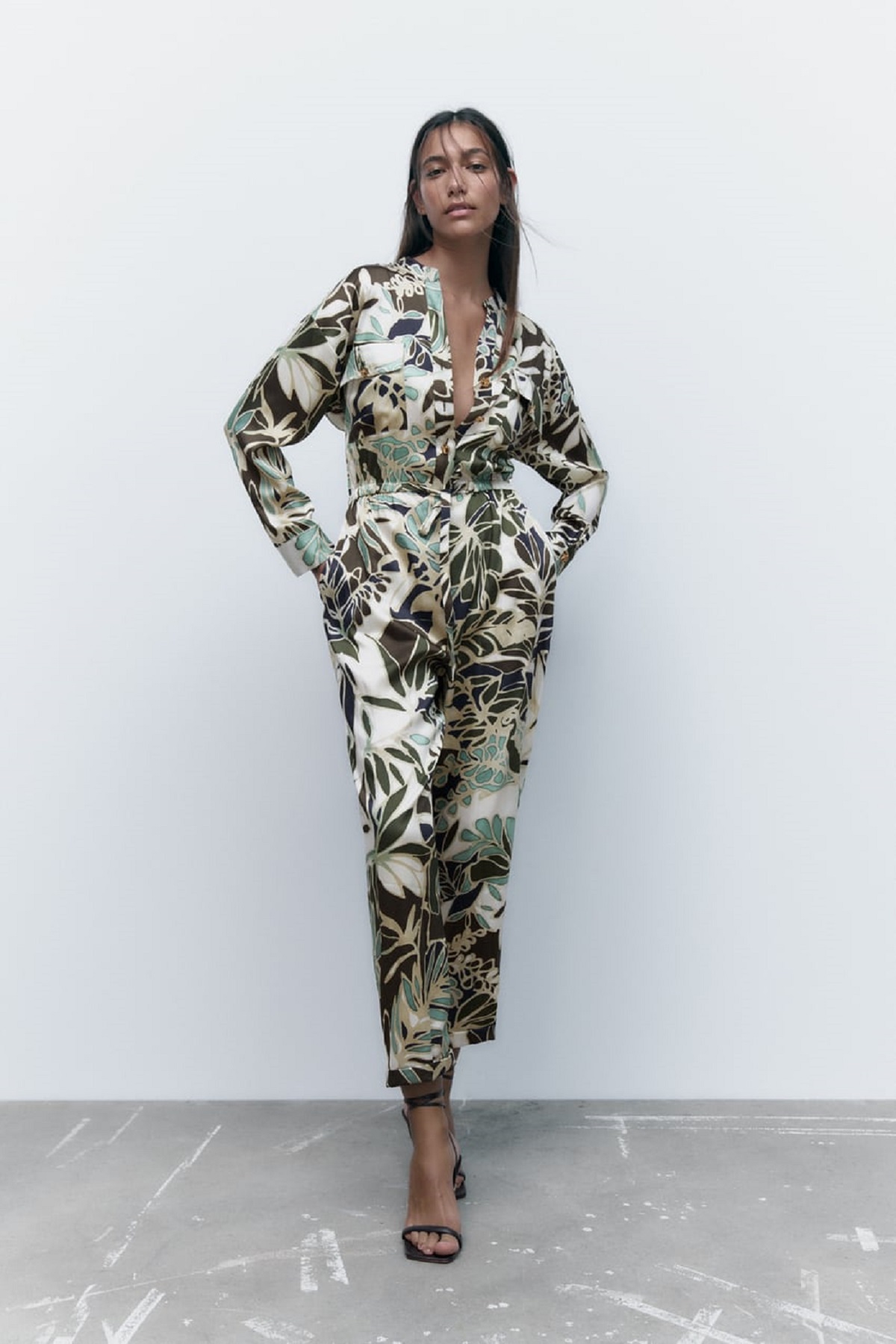 Si hay algo que dista mucho este año de lo que solemos ver en invierno, es que vienen muchas prendas con colores vivido como este increíble mono estampado tropical. Aunque tiene aspecto de primavera, queda perfecto para las celebraciones navideñas. ¿Por qué no dejar de lado el clásico negro, rojo y verde y apostar a algo nuevo? La cintura elástica con lazada es finísima y hace que sea un modelo mega cómodo. Los bolsillos delanteros de plastrón con solapa ya ni te cuento. Estamos que nos vamos corriendo a comprarlo. 49,95 euros y será tuyo.