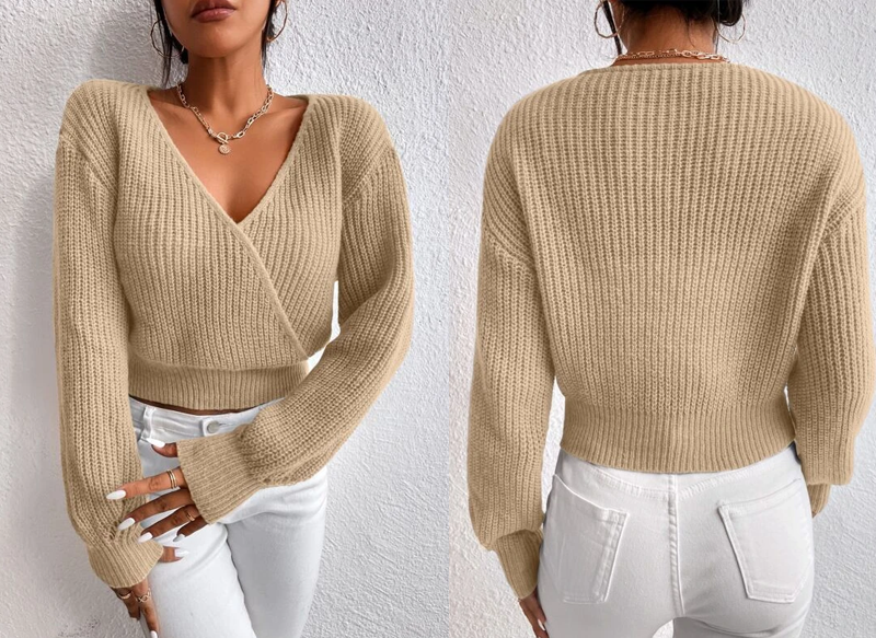 Este jersey de cuello cruzado de hombros caídos es una prenda superior a la que podrás sacar mucho partido durante este otoño, ya que es muy fácil de combinar al tiempo que te permite lucir con un look perfecto para un estilo casual.