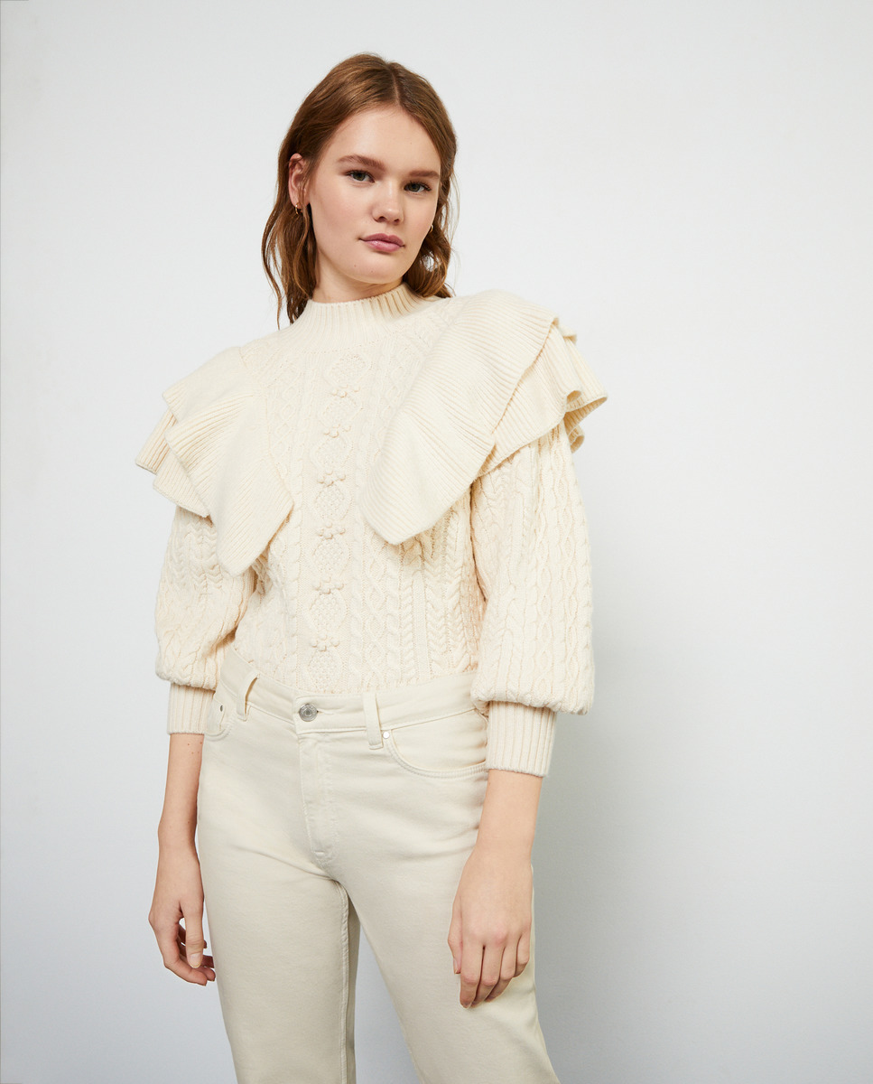 Otro de los jerséis que no podrán faltar en tu armario este otoño e invierno es este de la marca Tintoretto. Disponible en un bonito color blanco roto, uno de los detalles que más llaman la atención es su doble volante, capaz de atraer todas las miradas. En cuanto a su precio, lo puedes conseguir por 69,99 euros.