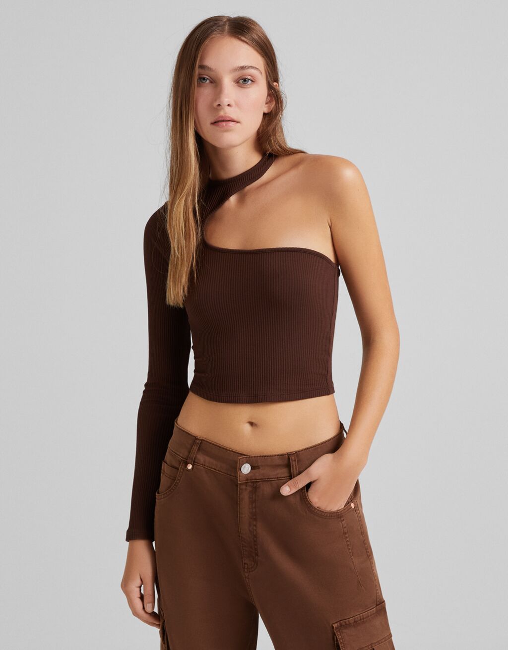 No todo son jerseys en las rebajas de Bershka. Ahora, la tienda ha bajado de precio una de las camisetas más buscadas de la temporada. Asimétrica y de diseño cut out, será la favorita tanto para el día a día como para ocasiones especiales gracias a su tono marrón oscuro. Ahora, te puedes hacer con ella por solo 7,99 euros cuando antes costaba 12,99. Una gran inversión.