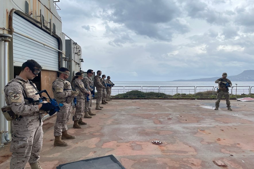 El Trozo de Visita y Registro del buque (TVR) también ha realizado varios ejercicios para mantener su nivel de adiestramiento en las instalaciones del NMIOTC, que incluyen la maqueta a tamaño natural de parte de un navío, donde realizaron ejercicios de tiro y de apoyo sanitario en operaciones de abordaje. El NMIOTC es un centro de excelencia OTAN en la realización de adiestramientos y cursos relacionados con las operaciones de abordaje de buques.