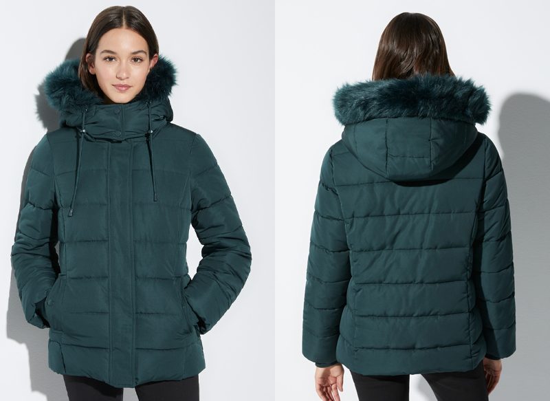 Es un plumífero básico acolchado que cuenta con una capucha ajustable mediante cordón y forro, que posee dos bolsillos exteriores y que se cierra mediante cremallera. Se encuentra confeccionado en 100% poliéster y es ideal para este otoño-invierno.
