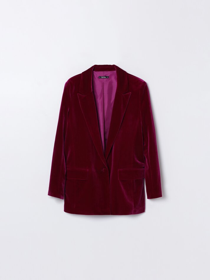 Si eres de esas personas que ya están pensando en qué se van a poner esta nochevieja, estás de suerte. Lefties tiene ya un montón de opciones en su catálogo para que elijas la que más pega contigo. Nosotros queremos destacar esta americana de terciopelo de corte recto, con hombreras y cuello esmoquin, confeccionada con un agradable y elegante tejido de terciopelo muy adecuado para las fiestas navideñas. Puedes llevarla tanto con un look negro entero o combinarla con su pantalón a conjunto para conseguir un total look de escándalo. Su precio es de 35,99 euros.