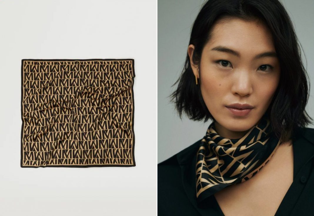 Un buen ejemplo lo tenemos en este pañuelo, con estampado de logo en dorado y negro, que podremos usar para darle un toque diferente a nuestros looks. Por tan solo 9,99 euros, merece una oportunidad.