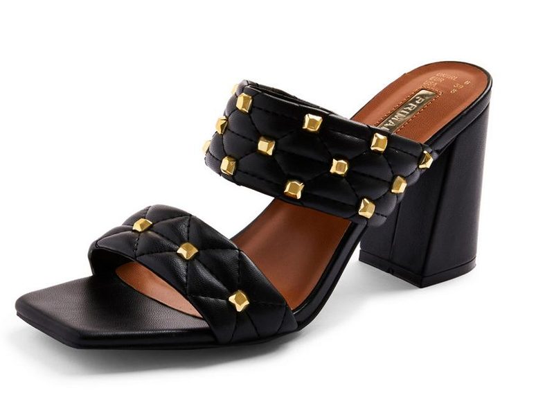 A la venta por 18 euros, son unos zapatos que tienen dos tiras gruesas con decoración de tachuelas en color dorado, con puntera cuadrada y tacón ancho. Es un calzado que podrás utilizar en diferentes eventos y momentos.