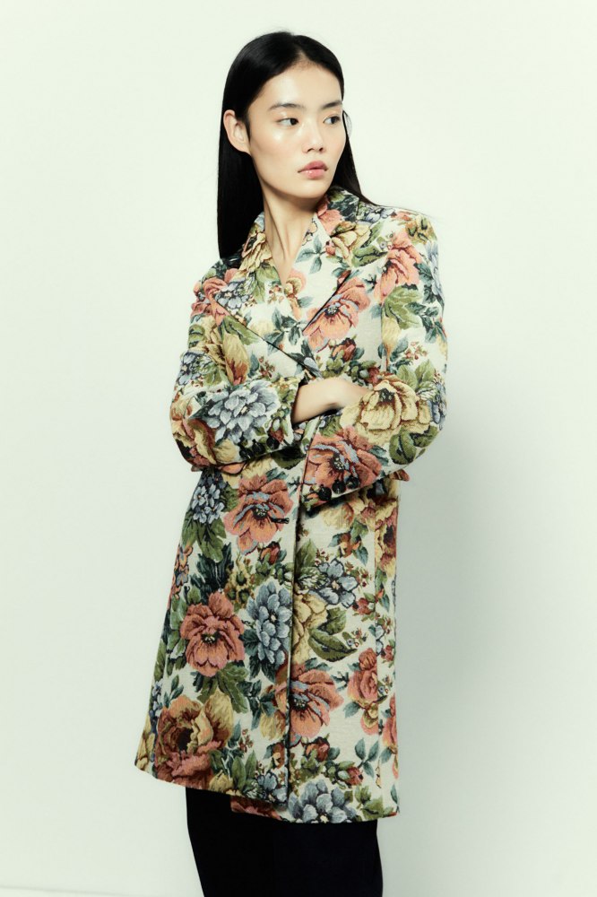 9Abrigo jacquard con flores, el más elegante de Sfera