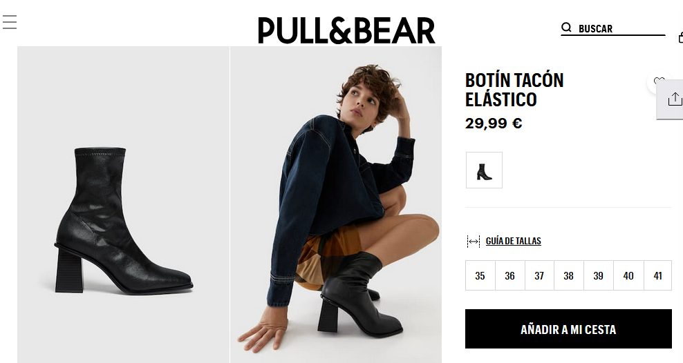Es uno de los grandes zapatos que cuenta con un estilo tipo botín de color negro, por lo que es perfecto de usar en cualquier momento. Además, tienen unos pequeños detalles de caña elástica para el mejor ajuste. Inclusive, su tacón cuadrado posee una altura del tacón 8 cm para que sea perfecto para las mujeres que desean estar un poco altas. Entonces, si deseas comprar estos botines solo tienes que entrar a Pull&Bear a un precio de 29,99 €.