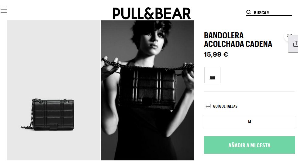 Es un bolso tipo bandolera de color negro con cuerpo acolchado y detalle de pespuntes, perfecto de usar en cualquier momento. Inclusive, cuenta con un cierre mediante solapa e imán para que tengan una mejor comodidad. Además, posee un asa larga de hombro en cadena con varios largos. Tiene las medidas de Alto x Ancho x Fondo 13.5 x 18.5 x 6 cm, para que lo puedan comprar solo tienen que entrar a Pull&Bear por un precio de 15,99 €.
